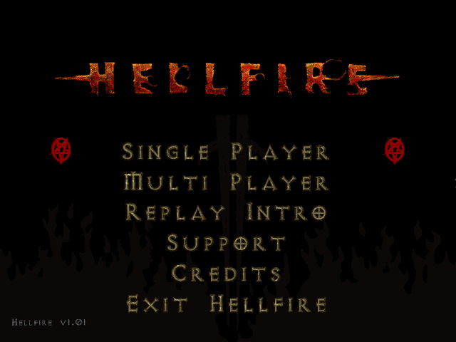 Startmenü von '''Diablo: Hellfire''' | Startmenü von '''Diablo: Hellfire''' | ||