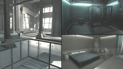 Nach seiner Entführung durch Mitarbeiter der Firma Abstergo Industries erwacht Desmond Miles in diesem Labor, in dem er von Professor Warren Vidic für die Experimente im Animus festgehalten wird. Neben der eigentlichen Animus-Kammer gibt es hier auch noch ein Badezimmer und den Schlafraum, in dem du dich zwischen den einzelnen Sitzungen erholen kannst.