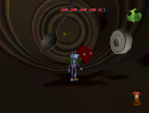 In einer Einleitungssequenz zu diesem Level wird gezeigt, wie sich Flik durch die Insektenmassen in der Stadt kämpft. Dabei sieht er, wie eine Fliege wegen schlechten Benehmens aus der Insektenbar geworfen wird.
