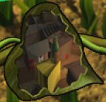 Krabbel nun in die Flasche rechts, um Korn 24/50 zu ergattern. (In der N64-Version befinden sich hier 2 Körner.) Wenn du aus dem beweglichen Samenkorn neben der Flasche eine große Pflanze züchtest, gelangst du nach oben, wo eine weitere violette Münze als Belohnung wartet. Wieder unten solltest du gleich eine lila Pflanze züchten, um die grüne Verfolgerbeere zu erhalten. Nimm den Samen wieder mit und platziere ihn genau unter dem schwebenden F. Mit Hilfe einer großen Pflanze kannst du es ohne Probleme abgreifen. Zu guter Letzt züchtest du erneut eine große Pflanze neben der Dose bei der grünen Sporenpflanze und findest oben noch ein Korn (25/50).