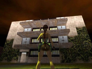 Laufe mit gezogenen Pistolen nach rechts und erledige zwei SAS. Ein dritter SAS läuft auf der anderen Seite des Kanals herum. Diesen kannst du gefahrlos vom Rand aus besiegen. Nimm das kleine Medipack mit, das einer der Gegner liegen gelassen hat. Gehe nun in die Seitenstraße und ziehe gleich auf der linken Seite den Sprunghebel über der Falltür. Die Klappe öffnet sich, und du landest knietief im Wasser. Zieh dort einen Bodenhebel und nimm 1 × Revolver Ammo mit, bevor du wieder hinauskletterst. Laufe die Seitenstraße weiter entlang. Auf der rechten Seite öffnet sich eine Tür, die wieder zum Startpunkt des Levels zurückführt. Falls du also dort noch etwas vergessen hast, kannst du es jetzt holen. Ansonsten gehst du in das allerletzte Haus rechts, wo das Motorrad steht. Fülle das Spezialbenzin ein und fahre wieder zum Ufer und dort ganz nach links zu der halbfertigen Brücke. Mit Schwung (Beschleunigungstaste) bretterst du über den Abgrund.