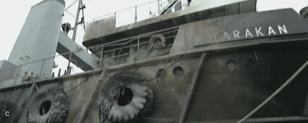 • Klemmbrett – befindet sich im Erdgeschoss, der Name „Tarakan“ ist in kyrillischer Schrift darauf zu lesen