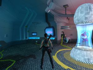 Im Raum mit der Maschine, die einen Zeitschalter aktiviert, springst du auf die kleine Schräge und danach sofort rückwärts, um dich an einem Maschengitter festzuhalten. Klettere hoch und steige links auf den Sims. Hier befindet sich eine Kiste mit Gegenständen.