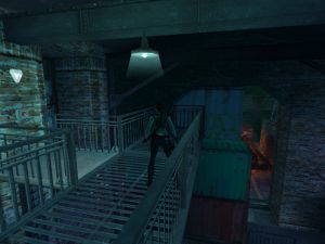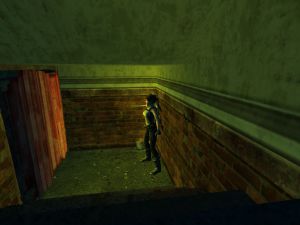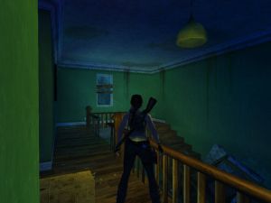 Im oberen Stockwerk des Hauses, in dessen Fahrstuhlschacht du hochkletterst, versperrt ein Schutthaufen den Treppenaufgang. Dieses Gerümpel lässt sich mit einer Granate entfernen. Dahinter befindet sich das Geheimnis.
