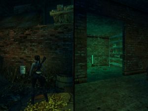 Dies ist ein schwer zu erreichendes Geheimnis, weil es mit einem Zeitschalter verbunden ist. Dieser Schalter befindet sich im Raum mit der Feuertonne (hinter den Stromkabeln, die du vorher deaktivieren musst). Bevor du den Timer startest, musst du mit einer brennenden Fackel den Schutt wegräumen, um den Durchgang freizubekommen. Dann erledigst du drei Soldaten dahinter. Erst jetzt betätigst du den Schalter (vorher am besten speichern)! Er öffnet ein Tor im Haus gegenüber und du hast ca. 55 Sekunden Zeit, bis es sich wieder schließt. Du darfst dir keine Fehler erlauben und vor allem den Sprung über die große Grube schaffen, ohne dich an der Kante auszurichten.