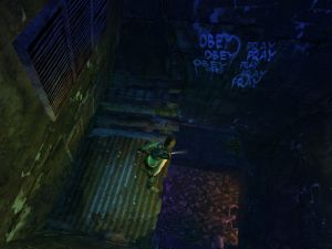 An dieses Geheimnis kommst du, nachdem du in der Kanalisation die Aufgabe mit den zwei Zeitschaltern neben dem verschlossenen Gang gelöst hast. Hinter einem Kriechgang schaffst du es mit Hangeln, Klettern und einem Sprung nach hinten auf eine Brücke, wo du dich nach unten ins Innere der Konstruktion begibst. Hier sprengst du den Unrat mit einer Granate weg, um den Weg zum Geheimnis zu öffnen.