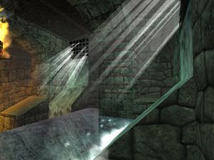 Nachdem du das erste Teilstück vom Auge des Abgrunds eingesteckt hast, geht es im Wasser weiter. Der Tunnel führt in eine Höhle, wo du in südöstlicher Richtung weiter tauchst. An der Gabelung hältst du dich links. Hier kannst du an Land und findest am Ende des Weges eine Gefängniszelle. Das Geheimnis befindet sich in einem zerstörbaren Fass.